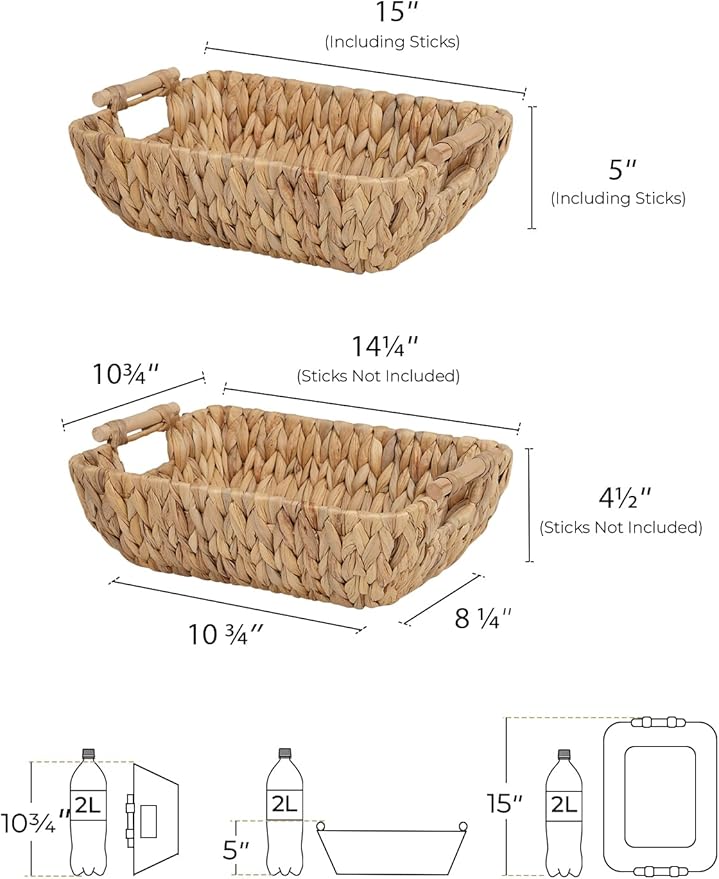 - Versatile water hyacinth baskets for storing hand towels, toiletries, toilet paper in the bath, or fruits, veggies, snacks, newspapers, pet toys, and other household items.