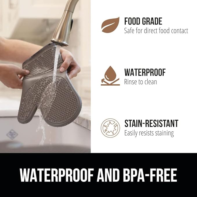 - FOOD GRADE AND BPA FREE: tested to be safe for direct contact with food, these mitts are food grade and BPA free and a perfect choice for any home