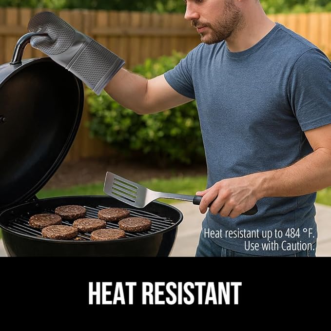 GORILLA GRIP BPA-Free Soft Silicone Oven Mitts, Heat Resistant and Waterproof Cooking Gloves, Thick Cotton Lining, Flexible Gripping for Baking Grilling, Kitchen Potholders Set of 2, 12.5x8.3, Gray