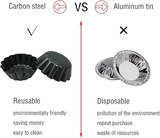 - Reusable and high temperature resistant mini pie tins- carbon steel material, better than disposable aluminum, can be reusable; temperature resistant up to 446โ, useful for oven