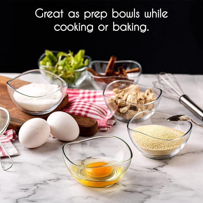 - MULTI-USE BOWL SET of 6: These perfectly sized 7 ¼ oz capacity mini pinch bowls are not only great as measuring ingredient bowls while cooking or baking, but also great for soups, snacks, side dishes, fruit salads, yogurt parfaits, trifle, oatmeal, cereal with milk, yogurt, desserts, and nuts. Perfect to serve honey, jam, sweets, biscuits, and fruits at home or at an event