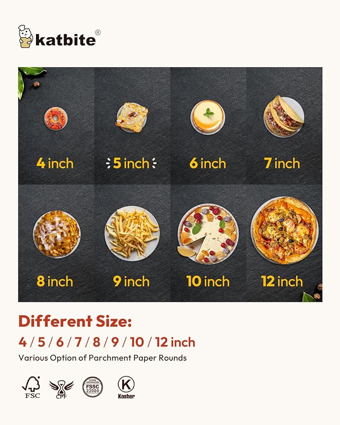 - NON-STICK & EASY TO CLEAN - Do you love kitchen but hate cleaning up? Katbite parchment circle 5 inch makes it possible and even works great! Food can be easily slide off from the baking tray and you just need to remove the paper and throw it away after baking.