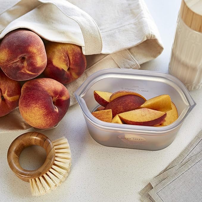 - Designed for easy use and cleaning: Single-piece construction with no glue or plastic sliders, Zip Top is the most durable and easy-to-use reusable container. The tops stay open and zippers do not overlap in the corners like normal zippers making it super easy to clean. Thick strong silicone will not tear or break keeping food fresh. No more lids!