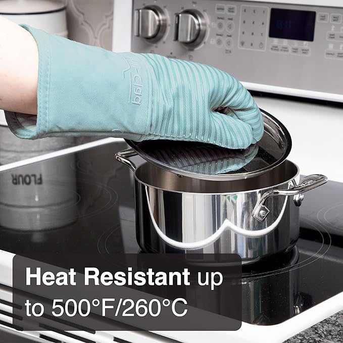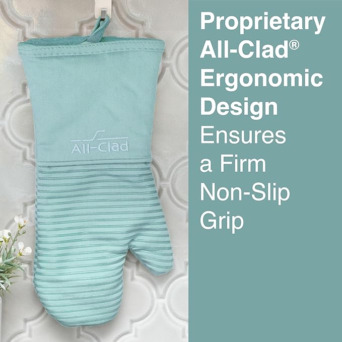 All-Clad Silicone Oven Mitt: Heat Resistant up to 500 Degrees - 100% Cotton & Silicone, 14"x7" Oven Mitt for Kitchen and Barbeque, 1-Pack, Rainfall