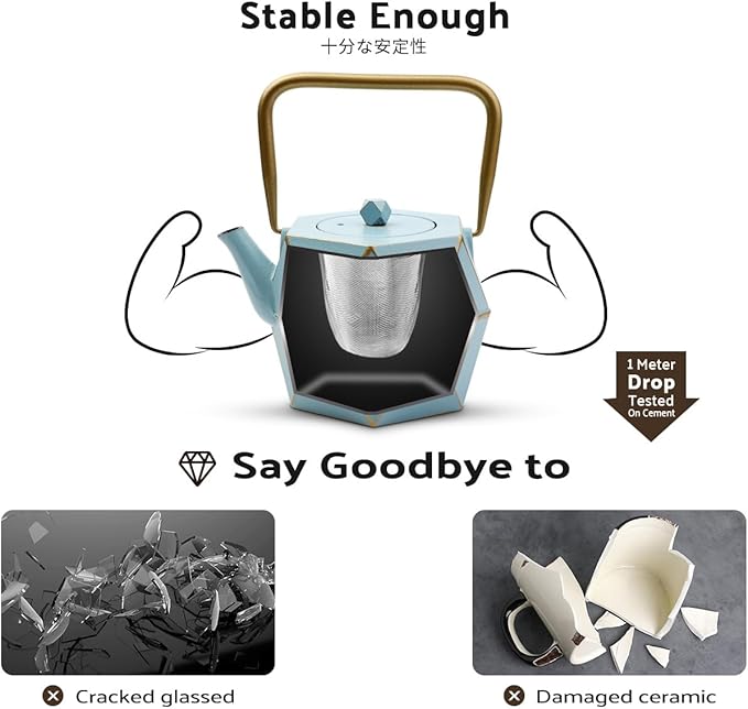 - π Tea Kettle for Stovetop - The cast iron tea kettle is sturdy and protects the teapot from shattering, which is more sturdy than the general glass/ceramic teapot. The fully enameled interior helps to taste the original and delicious tea. HEAT SOURCE: Induction Cooker, Electric Stovetop, Ceramic Stove Top, Gas Stovetop Safe, As a Humidifier Wood Burning Stove, Halogen Cooker, Fireplace for Humifying Moisture in the Air. Note: Low heat/Moderate heat is suggested, PROHIBITION OF DRY BURNING.