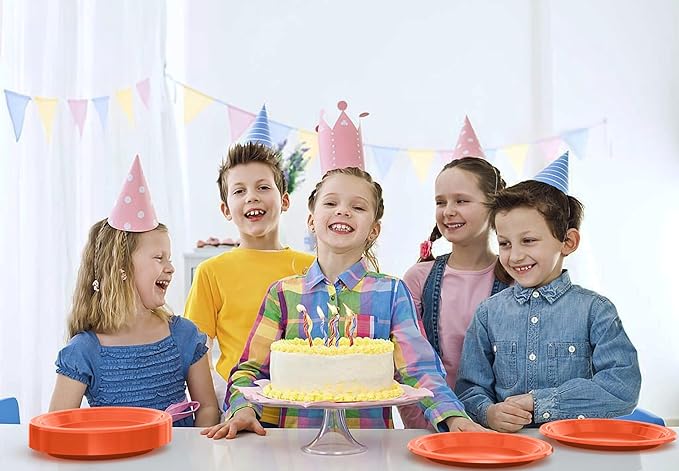 - Health & Safety: Our Orange plastic plate set is made with food safe materials, ensuring the health and safety of your guests. Whether it's for a birthday party or a picnic, you can trust that these disposable plastic plates meet the highest standards of hygiene, providing peace of mind for you and your loved ones.