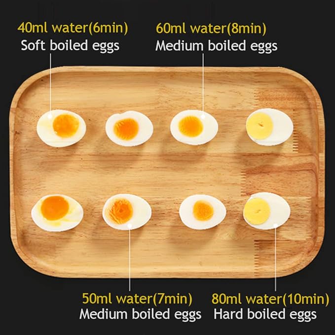 - Multifunctional and Rapid Egg Cooker: Following the instructions, the eggs are always going to be perfectly made. The soft, medium, hard Boiled, Poached, Steamed Eggs, Vegetables and Dumplings can be made within a few minutes. Tips: the measuring cup tells you how much water to put in for whatever type of egg you want to make. Just enjoy your delicious and nutritious breakfast!