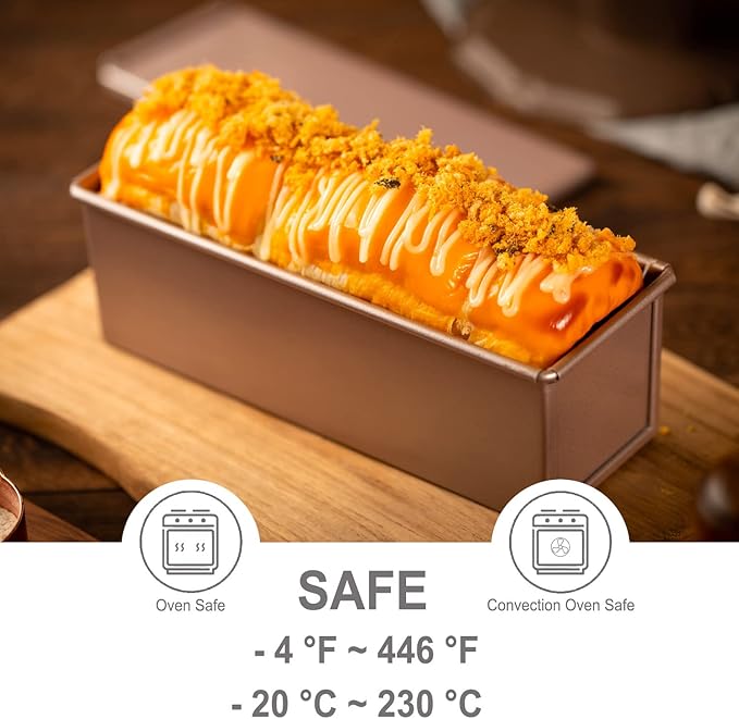 CHEFMADE Mini Pullman Loaf Pan with Lid, 0.66Lb Dough Capacity Non-Stick Rectangle Flat Toast Box for Oven Baking 2.8" x 8.1"x 2.8"(Champagne Gold)