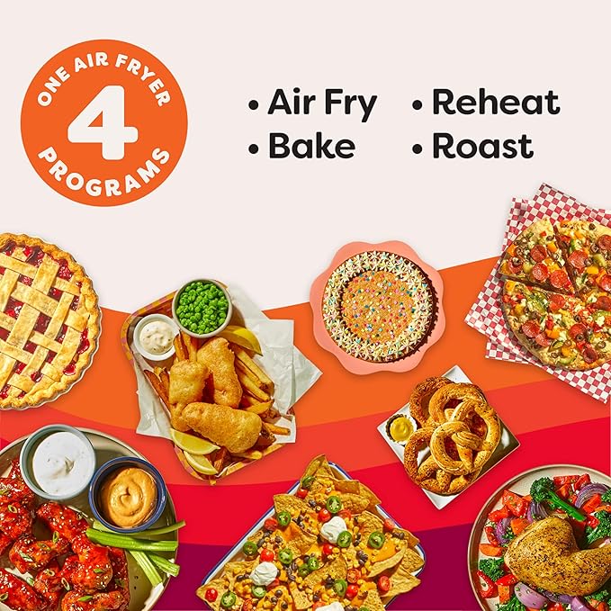 - 4 Cooking Functions: Air fry, bake, roast, or reheat with little to no preheating time, all in one easy appliance
