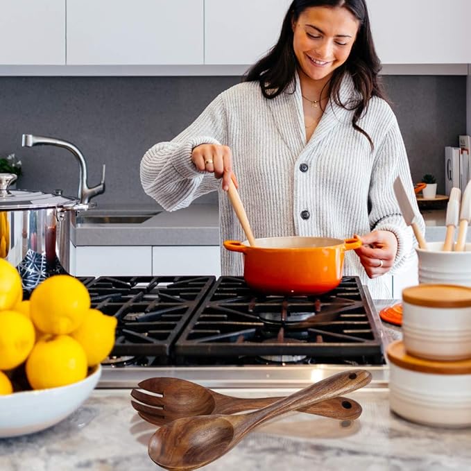 - Wood salad tongs made from durable acacia wood and unique oblong shape, the best material for cooking utensils, will not scratch or damage expensive cookers.