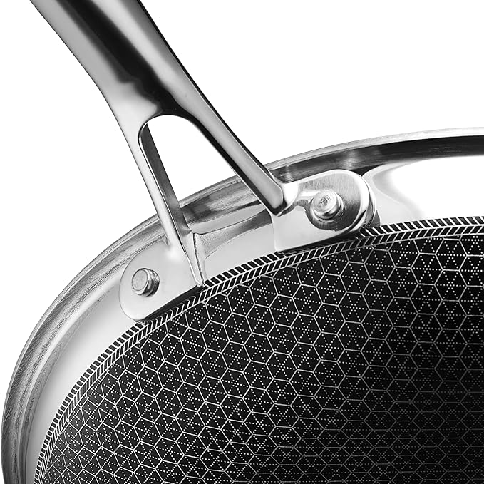 - HexClad’s patented Hybrid technology features a laser-etched hexagonal nonstick surface that combines both stainless-steel and our TerraBond ceramic coating for the ultimate sear and easy cleaning.