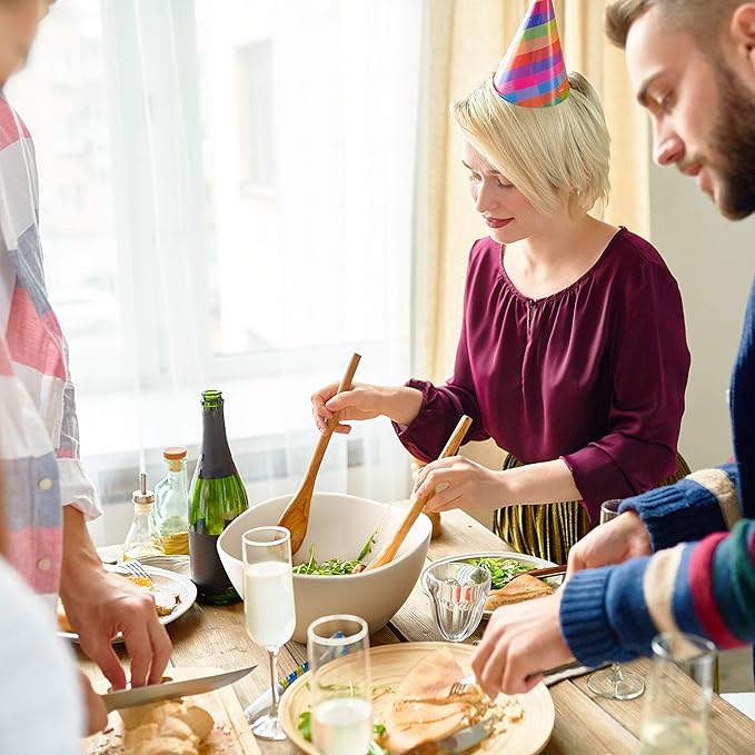 - Stackable and Space-saving: The salad serving bowls are sturdy enough and smooth. And they are stackable with other tableware for easy storage