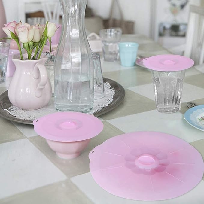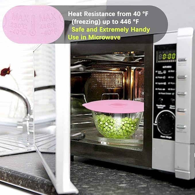 - ❤【MULTI PURPOSE USE】- Total 5 Sizes ,7 Pack- 4 inch(2Pack), 6 inch(2Pack), 8 inch, 10 inch and extra large 12 inch silicone suction lids will fit almost anything,such as Bowls,Pots, Pans, Dishs, Plates,Coffee Cup Jar,etc.Great for cooking and baking .Also perfectly and safely use for Microwave, StoveTop, Oven, Fridge and Freezer Safe. Withstands temperatures from -40 degrees F to 500 degrees F