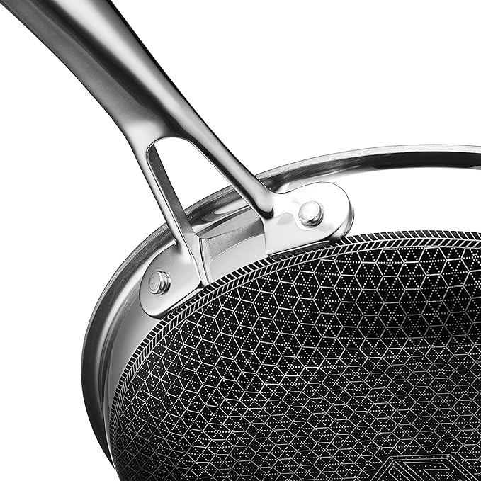 - HexClad’s patented Hybrid technology features a laser-etched hexagonal nonstick surface that combines both stainless-steel and our TerraBond ceramic coating for the ultimate sear and easy cleaning.