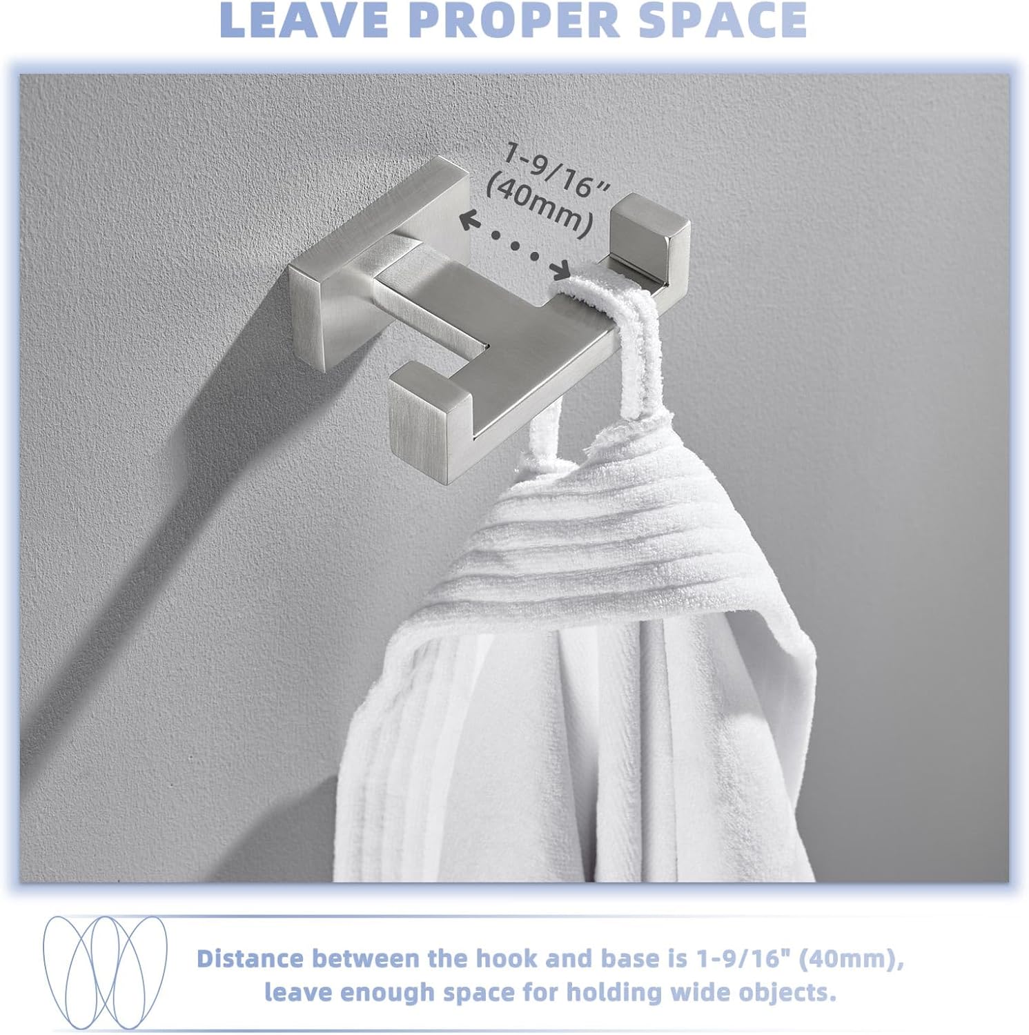 - APPROPRIATE SIZE: two hooks space 2-15/16" (75 mm), allows enough air to dry out damp towels, distance between the hook and base is 1-9/16" (40 mm), you could place wider stuff on it