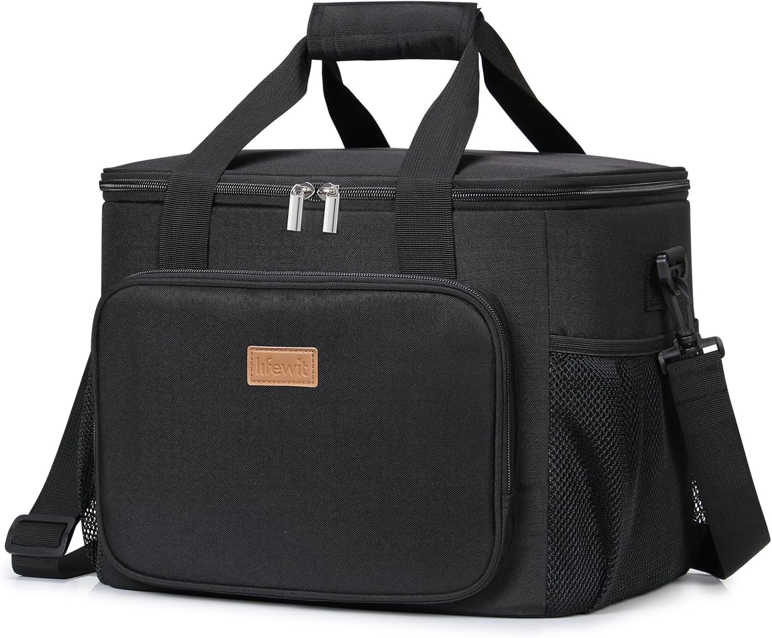 - Convenient & Portable: The lid of this cooler lunch bag can be opened up widely with strong two-way zippers, which means you can put your lunch container into the bag and take out of the bag vertically. Prevent liquids from leaking out of the container and soiling inside the bag. Tough handles and shoulder girdle allows you to carry it easily. Moreover, the front and side extra pocket can hold small items like keys and earbuds.