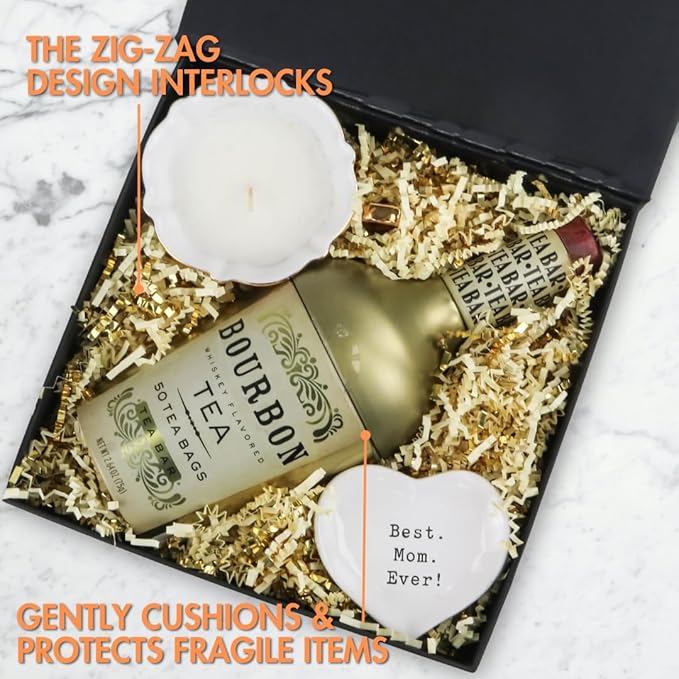 - VERSATILE GIFT WRAPPING & PACKAGING: Our 2 LB Vanilla & Gold crinkle paper filler is perfect for creating eye-catching displays in gift bags, gift boxes, and baskets. Fill those extra spaces with premium Vanilla & Gold filler paper, ensuring your gifts stand out at any event.