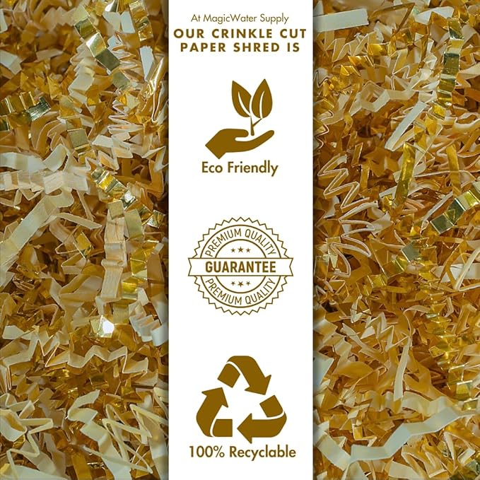MagicWater Crinkle Cut Paper for Gift Baskets - 2LB - Vanilla & Gold - Perfect for Shredded Paper Filler, Basket Filler, Gift Boxes, Bridesmaid Gifts, Halloween Stuffers & More – For All Occasions
