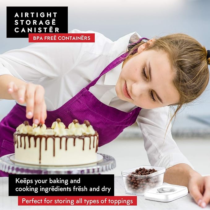 - 6 Small Food Storage Containers: This kitchen organization set includes 6 small air-tight containers that are all the same size. Each one has a 0.38 liter capacity (1.4 cups), measures 5.2” L x 3.8” W x 3.2” H, great for storing everything with a small amount from Chocolate, candy, nuts, dried fruit, coffee, tea, Splenda, to smaller servings of sugar.