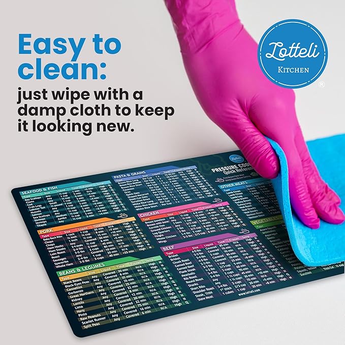 - No More Guessing Cooking Times β The Lotteli Kitchen instant pot cheat sheet contains cooking time and liquid ratio for over 100 common foods. With our pressure cooker accessories / ninja foodi accessories, you don't have to scramble through instructions or search on the Internet anymore, saving you a lot of time.