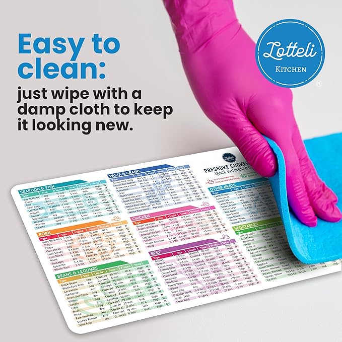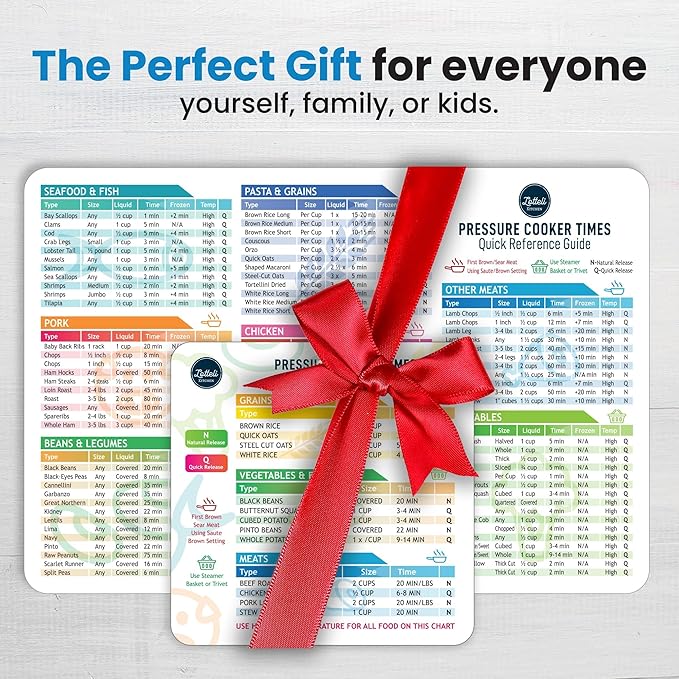 - No More Guessing Cooking Times β The Lotteli Kitchen instant pot cheat sheet contains cooking time and liquid ratio for over 100 common foods. With our pressure cooker accessories / ninja foodi accessories, you don't have to scramble through instructions or search on the Internet anymore, saving you a lot of time.