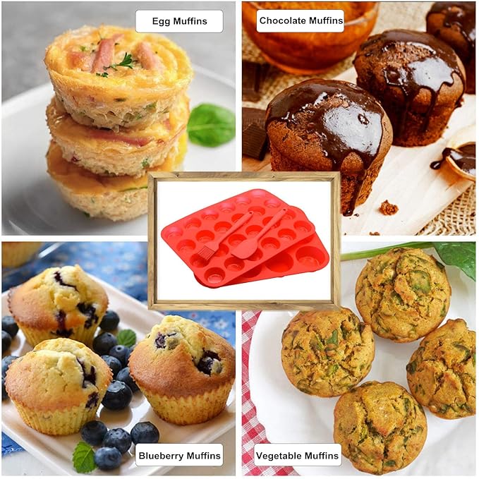 - PREMIUM SET OF MUFFIN PAN:The muffin pan set included: Mini 24 Cups and regular 12 Cups Baking Muffin Tin and 1 Extra Free Silicone Spatula & 1 Oil Brush.With these silicone baking pans, you could create up to 12 regular muffins, and 24 mini muffins at a time, truly giving you more for less!These silicone muffin molds are a must-have for any baking enthusiast!