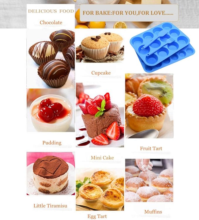 - MULTIPURPOSE SILICONE MOLDS:This is fun and versatile cupcake pan, great for making muffin, cupcake,Tart, Bread, Cheesecakes, Mousse, Jelly,Puddings,Brownies, Fudge and much more.With so many options you will never stop surprising your loved ones with delicious and creative desserts.