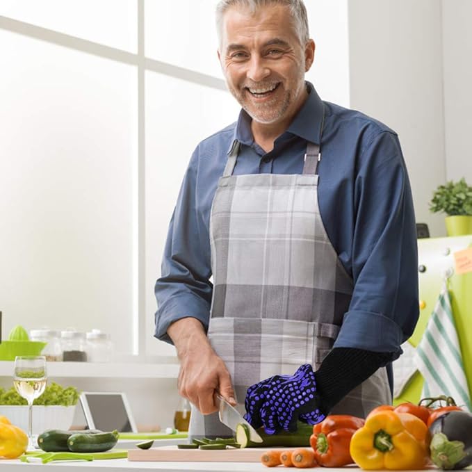 - Premium quality materials: The patterned silicone provides anti-slip protection, while the ultra-high-strength aramid fiber offers heat resistance, cut resistance, and resistance to acids and alkalis. The polyester cotton lining ensures a soft and comfortable interior, striking the perfect balance between protection and comfort.