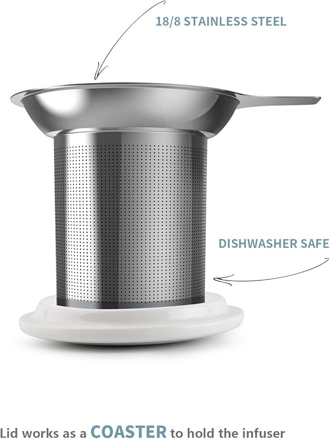 - Ex-Large Tea Infuser: 20 oz Large tea mug with an infuser and lid is your best choice, no matter go outdoors in your living room & backyard. The 20 oz capacity is enough for a day's drinking, and you'll never have to carry another tea maker. More convenient and simple.