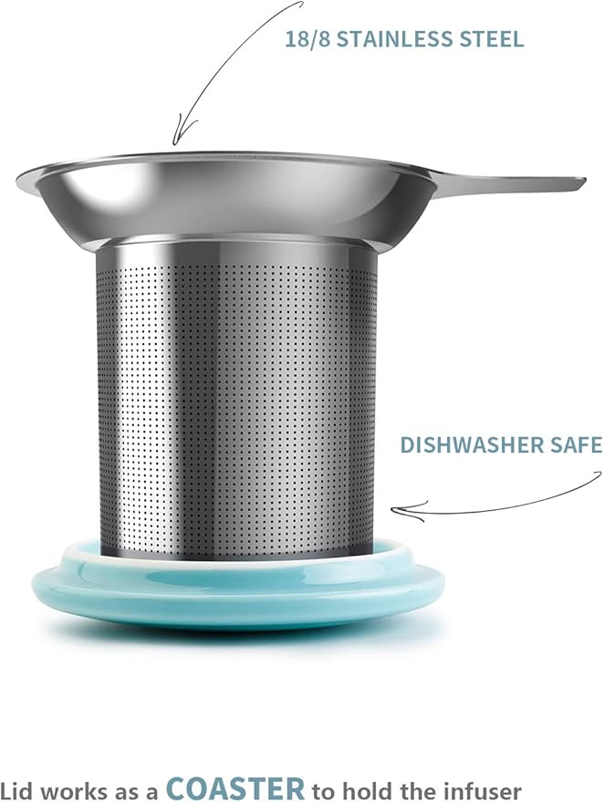 Sweese 20 OZ Porcelain Tea Mug with Infuser and Lid, Loose Leaf Tea Cup, Gifts for Tea Lover - Turquoise