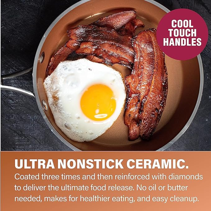 - ULTRA NONSTICK – our award winning ceramic and titanium coating ensures the ultimate easy release - everything just slides right off the pan, no need for oil or butter – ever