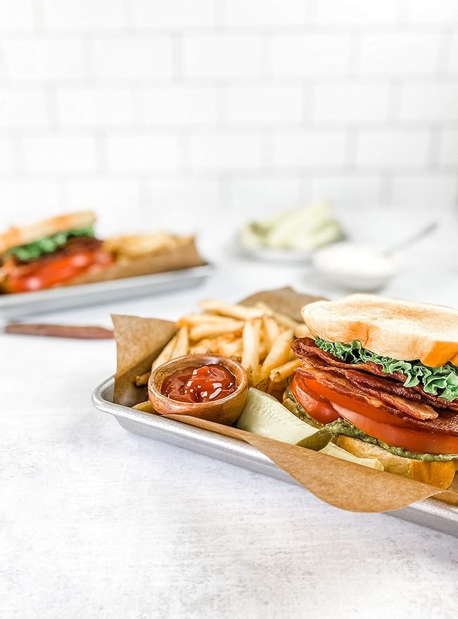 - Classic Mini Sheet Pan Set of 2 for baking treats or roasting vegetables; commercial grade and heavy gauge aluminized steel