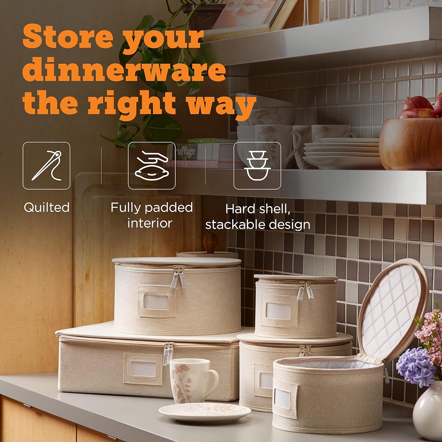 - Premium Protection: Our small storage containers are designed to provide exceptional protection for your valuable dinnerware, glasses, and stemware. The hard shell exterior shields against impacts, even while shipping, and the quilted interior with felt plate dividers gently cradles each piece, preventing scratches, chips, or cracks. You can even use these kitchen storage containers as a utensil organizer.
