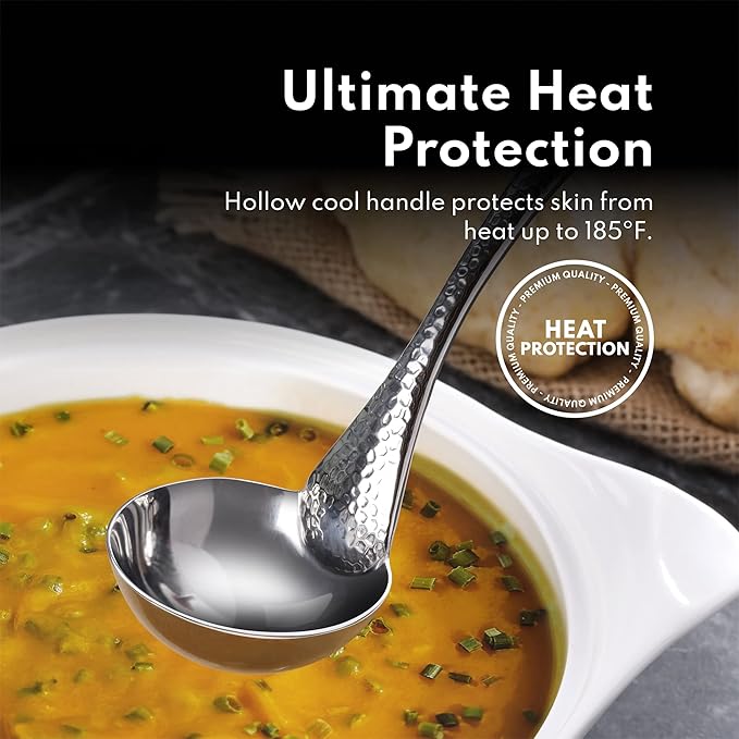 - Luxurious hammered stainless steel finish and an elegant ergonomic design that will elevate your dining table and kitchen.