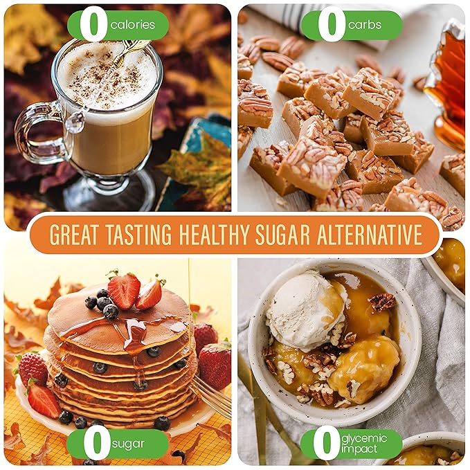 - β€οΈ PERFECT FOR ALL DIET PLANS - 0 glycemic index, 0 calories, 0 carbs, 0 fat, 0 sugar, & no impact on blood sugar level means even with the keto diet our liquid no calorie stevia is safe. Enjoy the yummy maple flavoring liquid keto sugar free sugar that you can use as a healthy sugar substitute, stevia coffee flavoring, maple syrup keto sweetener & more!