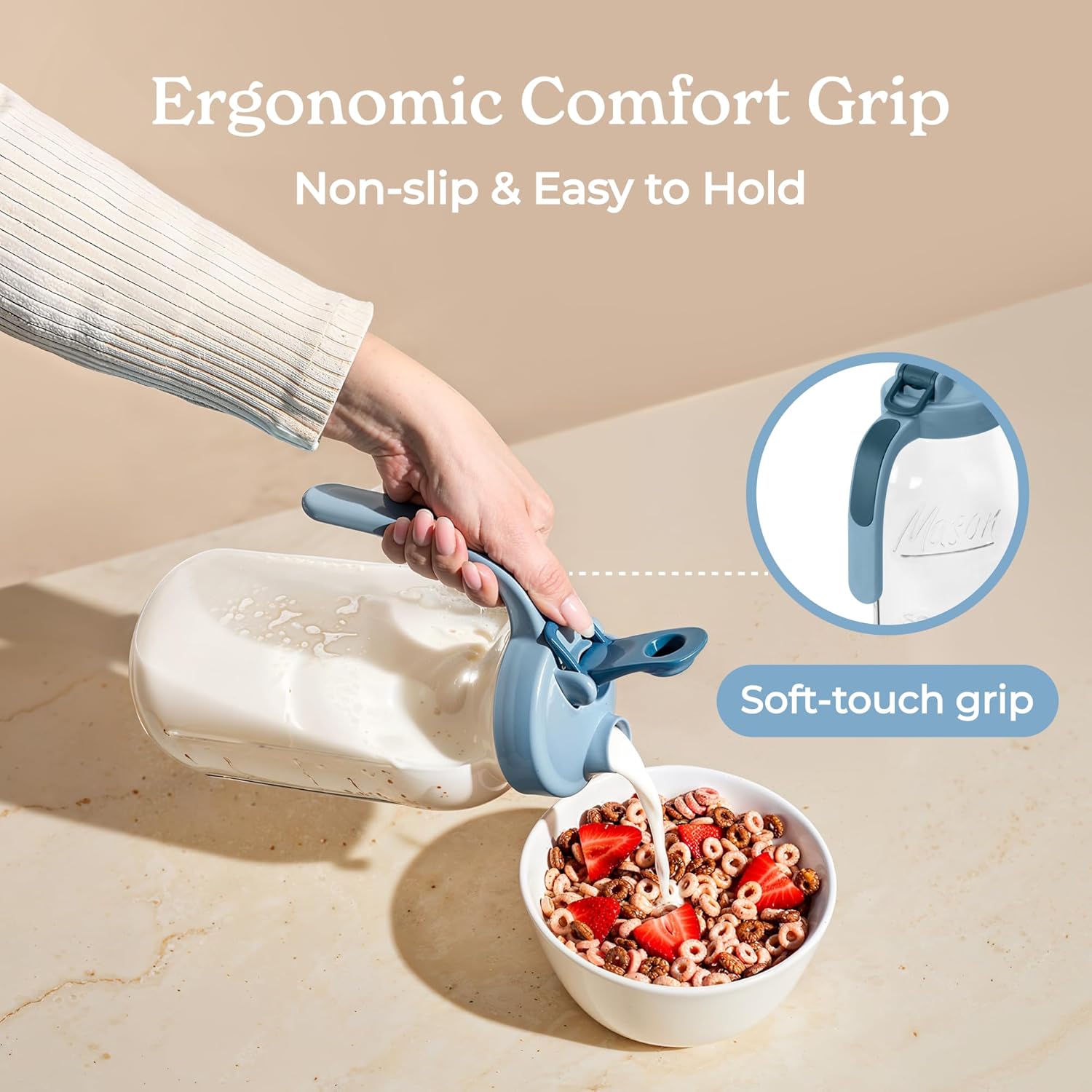 - Easy To Pour With Ergonomic Handle - The non-slip handle on this 2 quart pitcher with lid ensures steady pouring. Compatible with 3 and 3/8in mason jars, it’s perfect as a breast milk pitcher or iced tea pitcher.