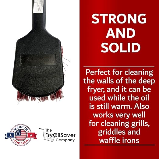 - HEAVY-DUTY CLEANING BRUSH FOR COMMERCIAL FRYERS & KITCHEN EQUIPMENT – Tackle tough grease and grime with this industrial-strength cleaning brush, designed specifically for deep fryers, air fryers, roasters, griddles, waffle irons, and more. Ideal for restaurants, cafeterias, commercial kitchens, and catering operations, this brush cuts through stubborn food buildup and baked-on grease with ease. Built to withstand high temperatures, it delivers powerful scrubbing performance where you need it most, helping maintain cleaner, safer, and more efficient kitchen equipment.