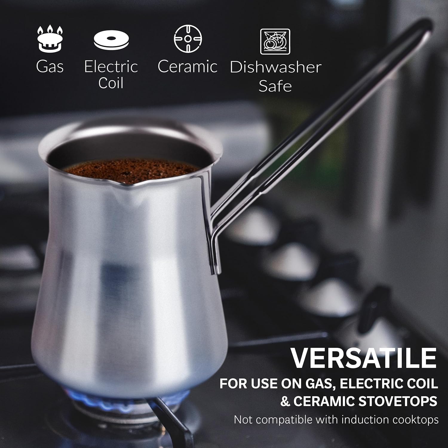 - COMPATIBILITY - Suitable for gas, electric coil, and ceramic stovetops - heats quickly and evenly. Not compatible with induction cooktops.