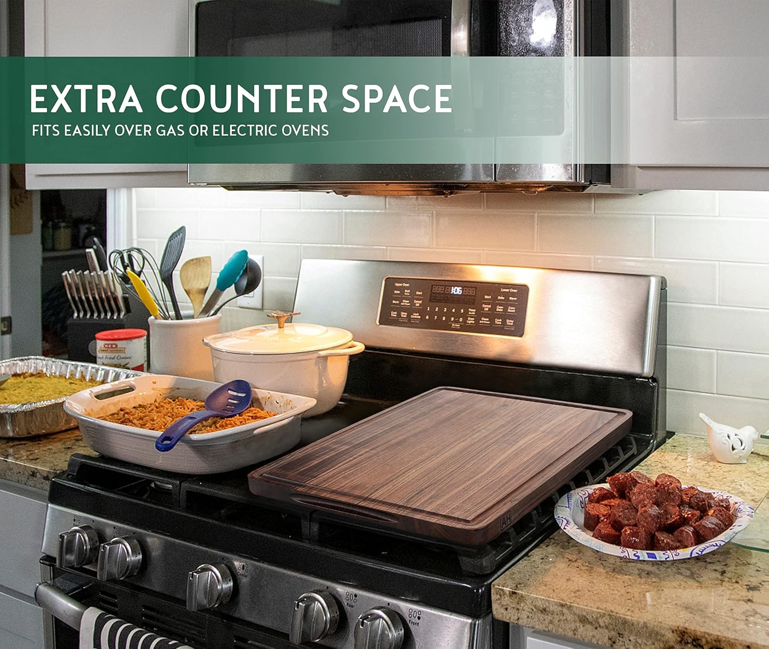 - KNIFE FRIENDLY – This all-natural board has perfect solidity and softness to prevent from blunting your knives. As with all wood cutting boards, it may show some knife marks, but when cared for properly (instructions in the box) it will preserve the rich color and last longer.