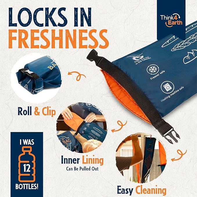 - ECO-FRIENDLY & REUSABLE BREAD BAGS: Opt for our reusable bread bags made from recycled plastic bottles as a planet-conscious alternative to disposable plastics. Contribute to a greener future while keeping your homemade or professional bakery products fresh with Think4Earth's sustainable food storage solutions. Crafted from 12 BPA-free, food-safe recycled plastic bottles, these vegan-friendly, 100% recyclable bags make a positive impact.