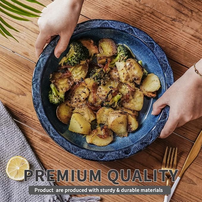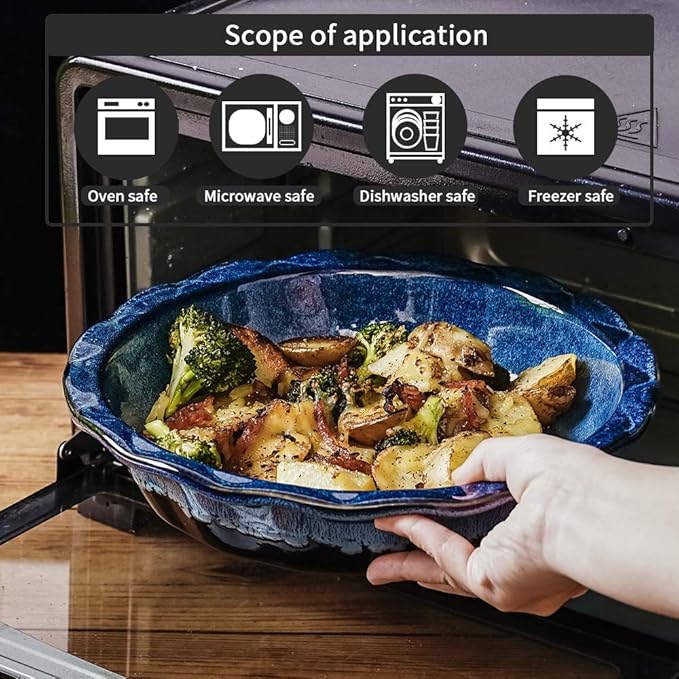 - ARTISTIC REACTIVE GLAZE: The KOOV deep dish pie pan features reactive glaze color for enjoyable baking time. Remarkable display can be a charming decoration even an artwork in your dining table and kitchen.