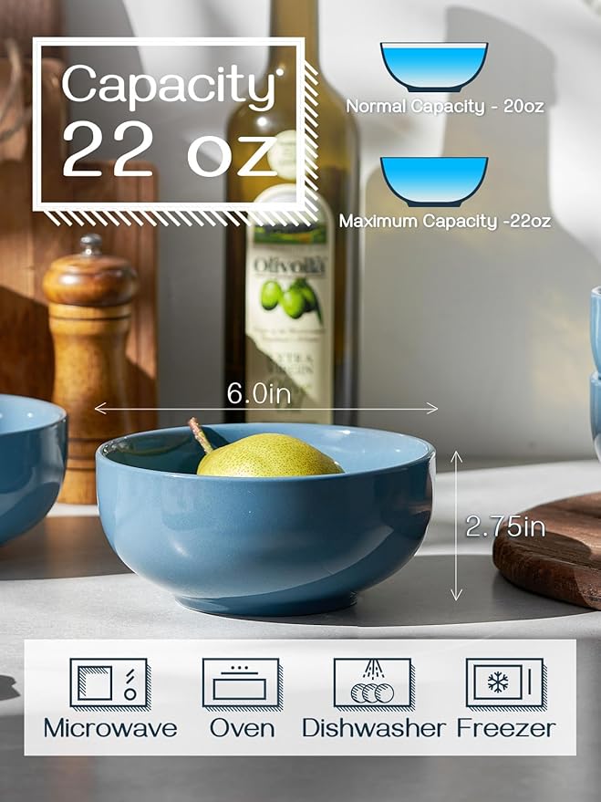 - Versatile Size: Deep and Classic 22 OZ bowls set are perfect for cereal, soup, nuts, salad, fruit, rice, and noodle without spillage. Ideal for family dinners, food storage, breakfast oatmeal, restaurant service, parties, and holiday gifts.