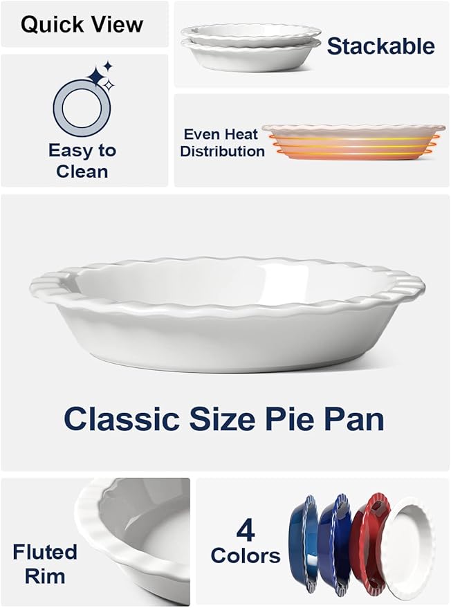 - A Versatile Dish You Worth It: 9 inch in diameter, 1.7-inch in height; Our fluted stoneware pie dish not just for home-made baking fruit pies, pot pies, crisps, quiches, but also fits the regular 9-inch pie crust bought in the grocery store; So you can save time preparing pie