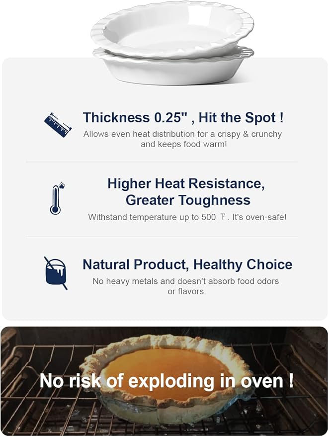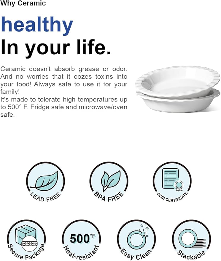- Ceramics Is A Healthier Choice Than Metal Bakeware: The ceramic pie dish elevates pie baking from ordinary to art as it evenly distributes the heat during baking; Durable for everyday use; The highly resistant glaze does not absorb food odors or flavors