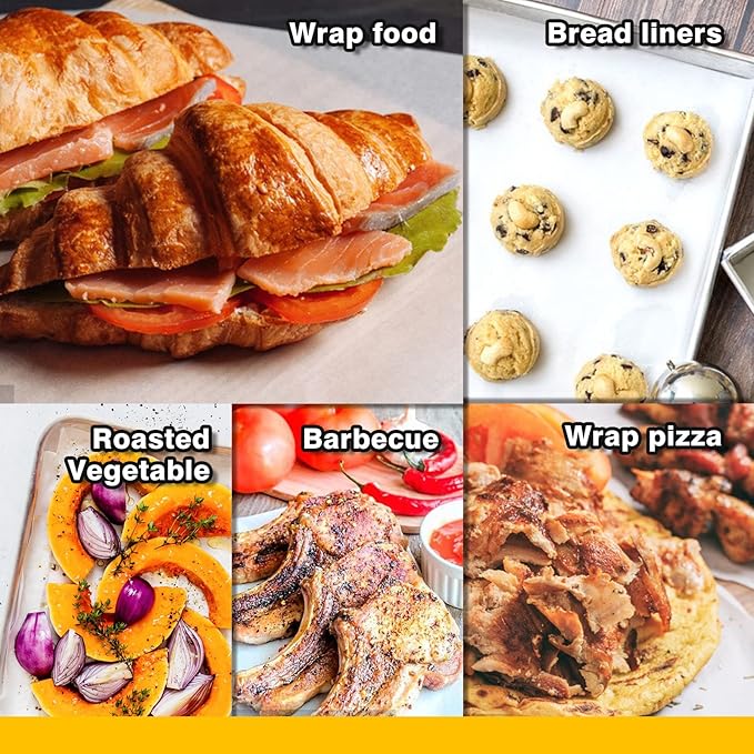 - Non-Stick & Easy to Clean - Parchment paper use the double silicone coating side design, so you don't get stick together when you're baking foods. You can easily clean and save your time. Convenient!