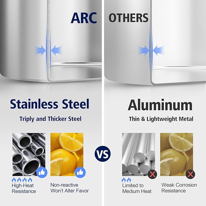- PREMIUM QUALITY STAINLESS STEEL: ARC stock pot is made of food-grade stainless steel, the sturdy stockpot provides reliable strength. No more coating is harmless to health.
