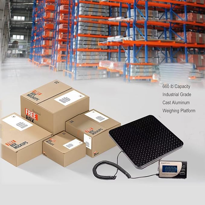 Amazon Basics Digital Postal Scale, Heavy Duty, Aluminium Platform, 440 lb Capacity, 1 Ounce Readability, Black