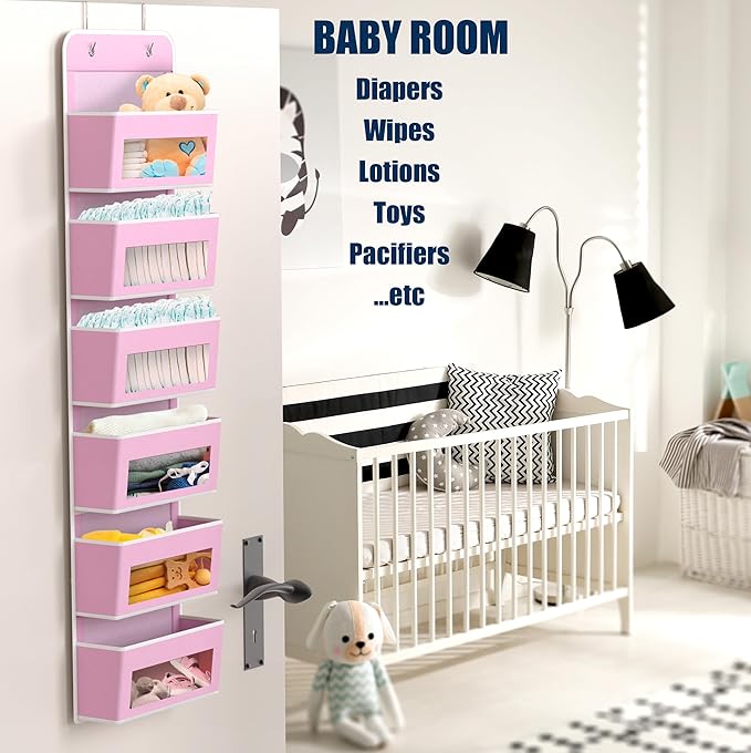Simple Houseware 6 Clear Window Pocket Over Closet Door Storage Hanging Organizer for Bedroom, Bathroom, Pantry, Pink