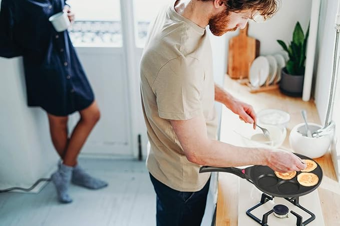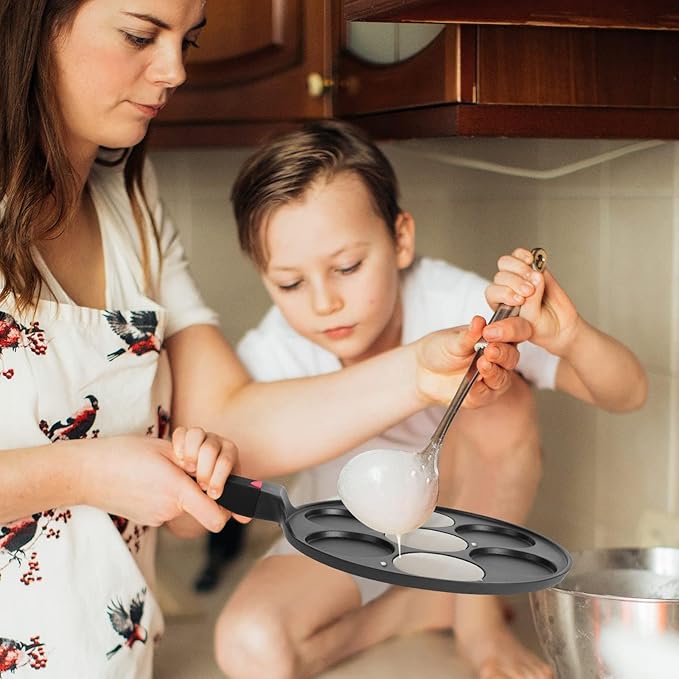 - Heats Quickly & Evenly – Made of sturdiness die cast aluminum, durability and light weight. 3 - layer thickened pot bottom evenly heated ensures maximum heat transfer for fast, not leave dark spots on your mini pancakes / omelets.
