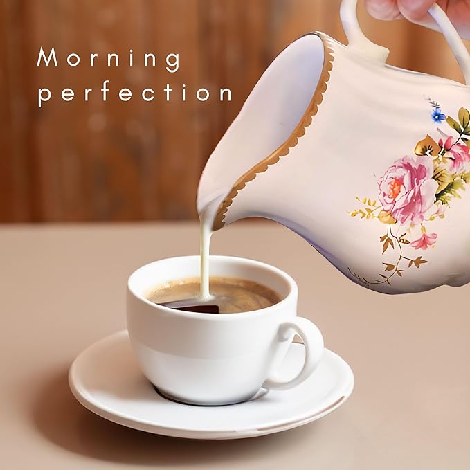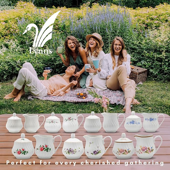 Sugar and Creamer Set - Porcelain Sugar and Creamer Floral Vintage Tea Set with Elegant Embossed Swirls - Exquisite Fine China Tea Set for Parties & Celebrations - Timeless Rose Set by Lynns